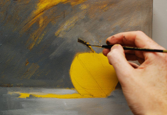 Когато рисувате първо скицирайте с молив на платното и чак, когато сте готови отворете боите и започнете да творите.