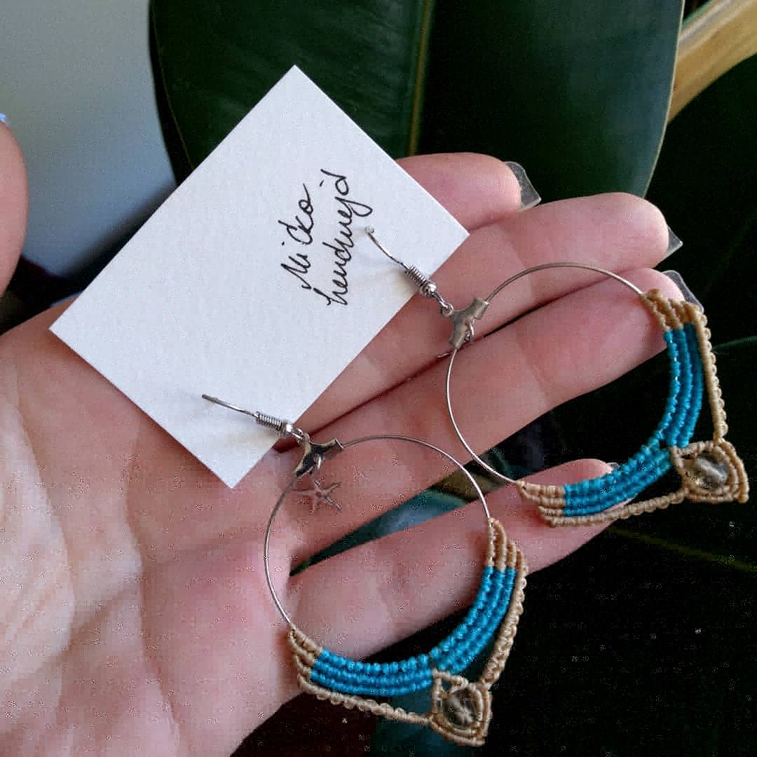 Nakit se najčešće pravi u kombinaciji čvorova i raznih perli (staklenih, drvenih, itd), privezaka ili školjki. U narednoj galeriji možete vidjeti nakit izložen u Dućanu MiCka Handmade,koja se bavi izradom unikatnog nakita u makrame tehnici. Rađen prije svega srcem pa onda i rukama.