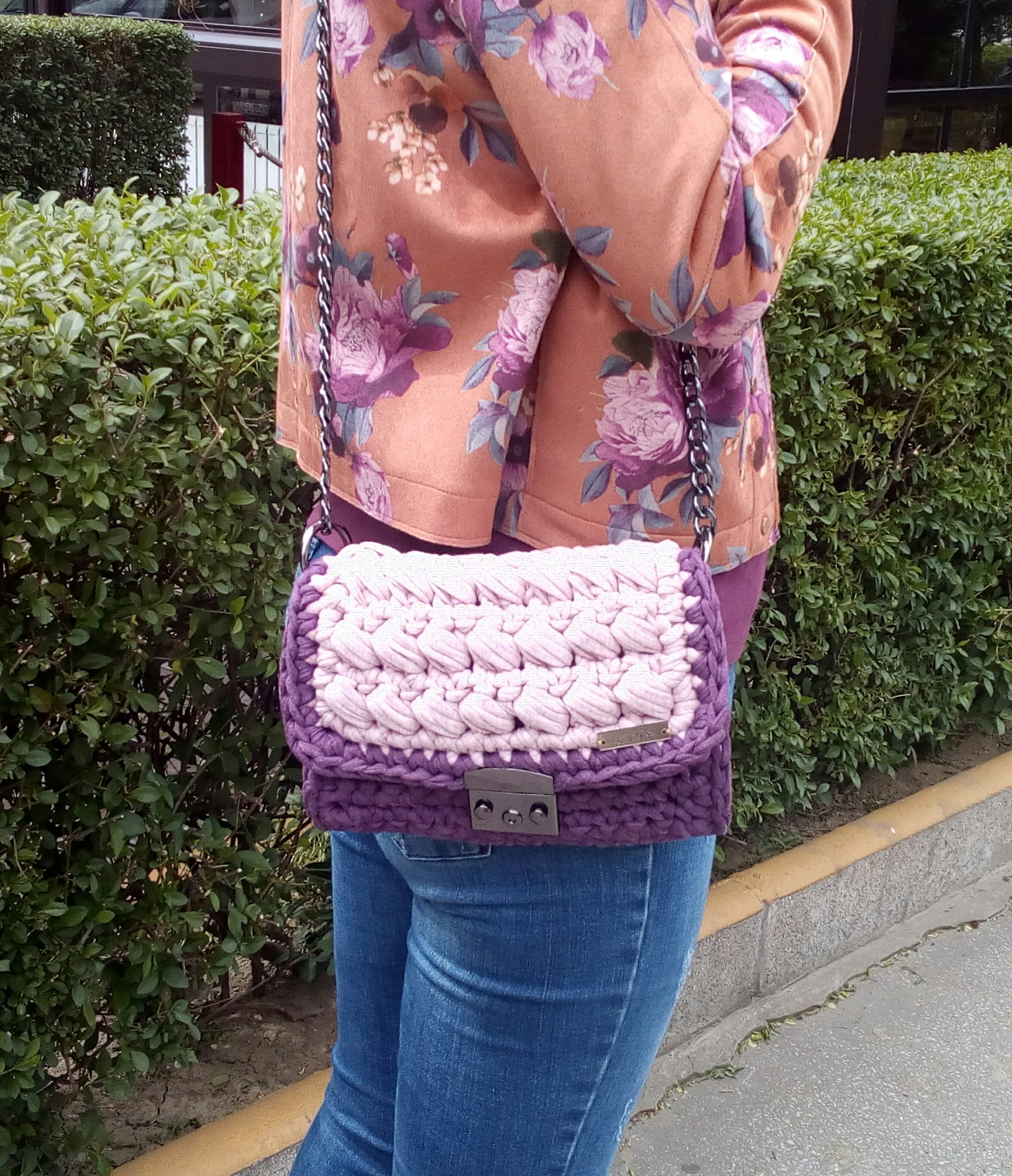 Unikatna heklana torbica od pamučnih traka.