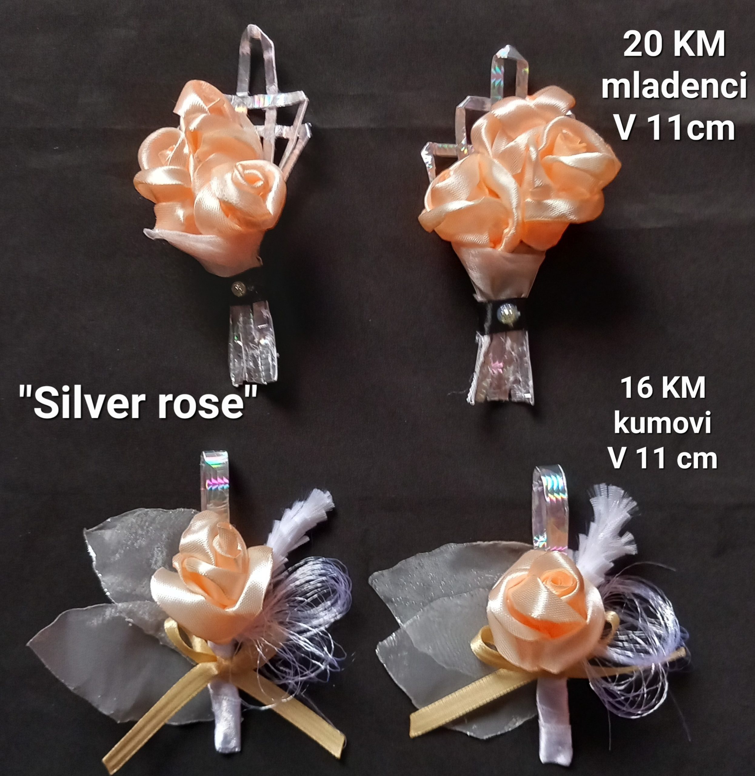Set unikatno rađenih satenskih cvjetova za mladence i kumove