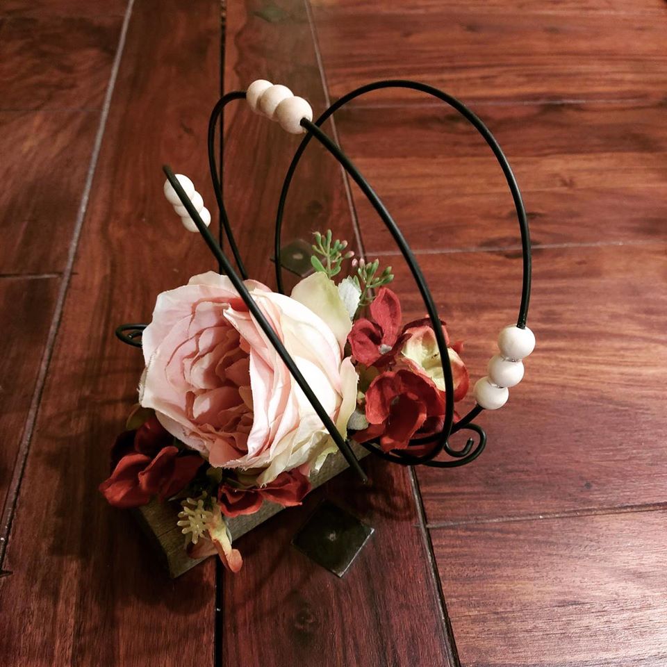 Ručno izrađena dekoracija za sto (ikebana) je jedinstvenog izgleda, koja će ukrasiti Vaš sto I može biti poklon. Ikebana je cca 20cm. Osnova je od drveta, cvetovi, trake su od kvalitetnog materijala I trajni su.