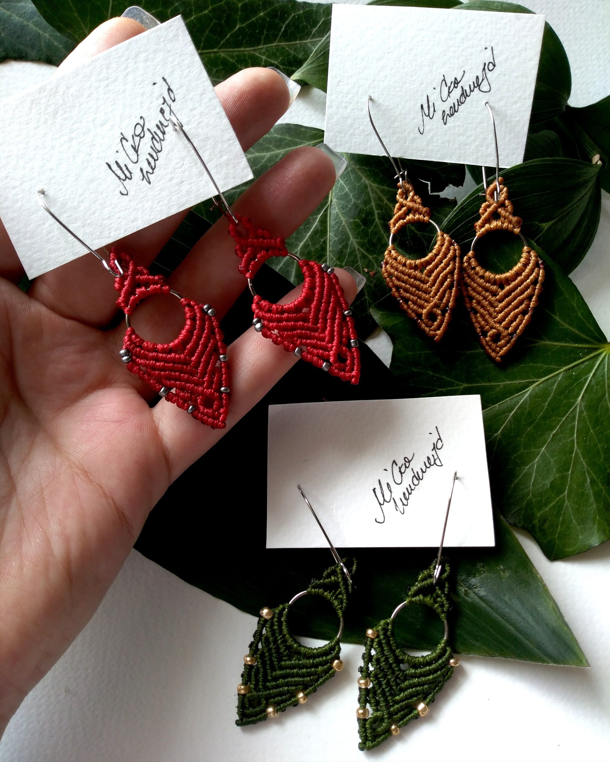 Nakit se najčešće pravi u kombinaciji čvorova i raznih perli (staklenih, drvenih, itd), privezaka ili školjki. U narednoj galeriji možete vidjeti nakit izložen u Dućanu MiCka Handmade,koja se bavi izradom unikatnog nakita u makrame tehnici. Rađen prije svega srcem pa onda i rukama.