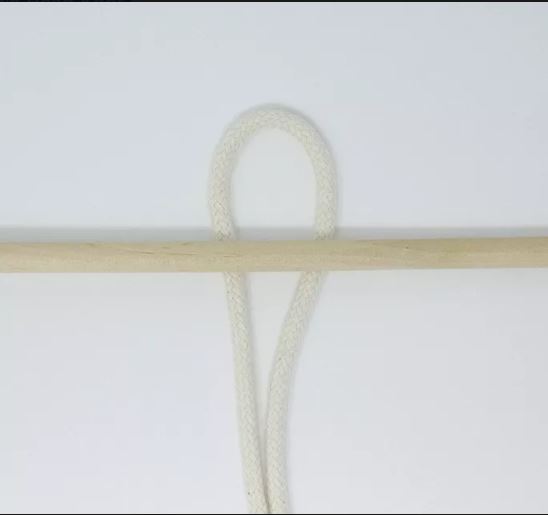 Kanap presavijte na pola (kreirate polu petlju) i postavite na predmet oko kojeg želite vezati čvor. Nakon što ste postavili kanap, uzmite njegove krajeve i provucite kroz polupetlju kako biste čvor zategli odnosno zavezali. I voala, naučili ste svoj prvi čvor u makrame tehnici.